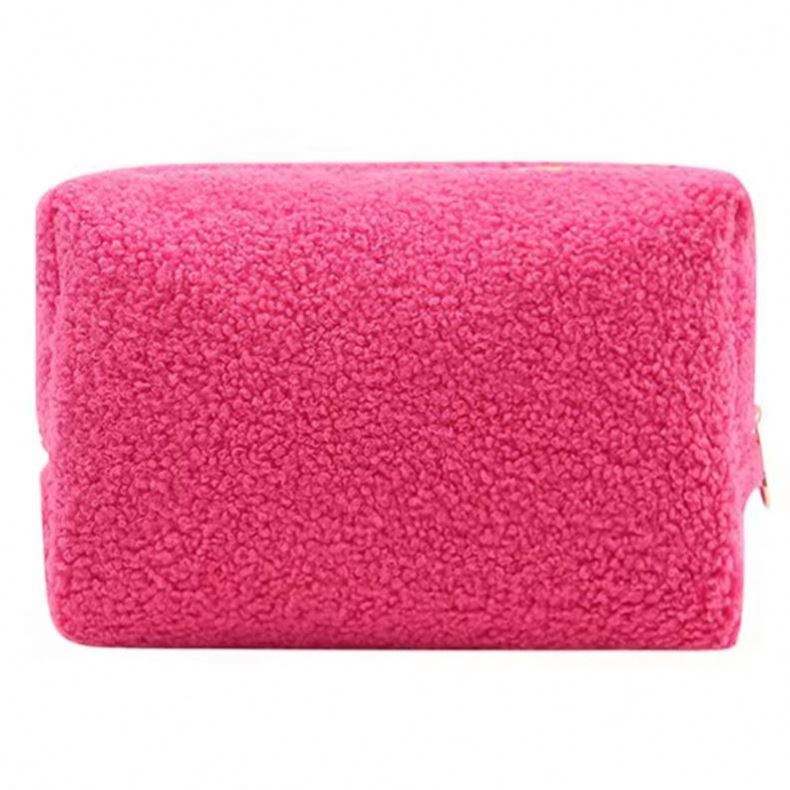 Nouvelle Trousse de Maquillage Carrée en Peluche 2024, Sac Cosmétique Portable Doux et Moelleux pour Voyage, Trousse de Toilette pour Femmes