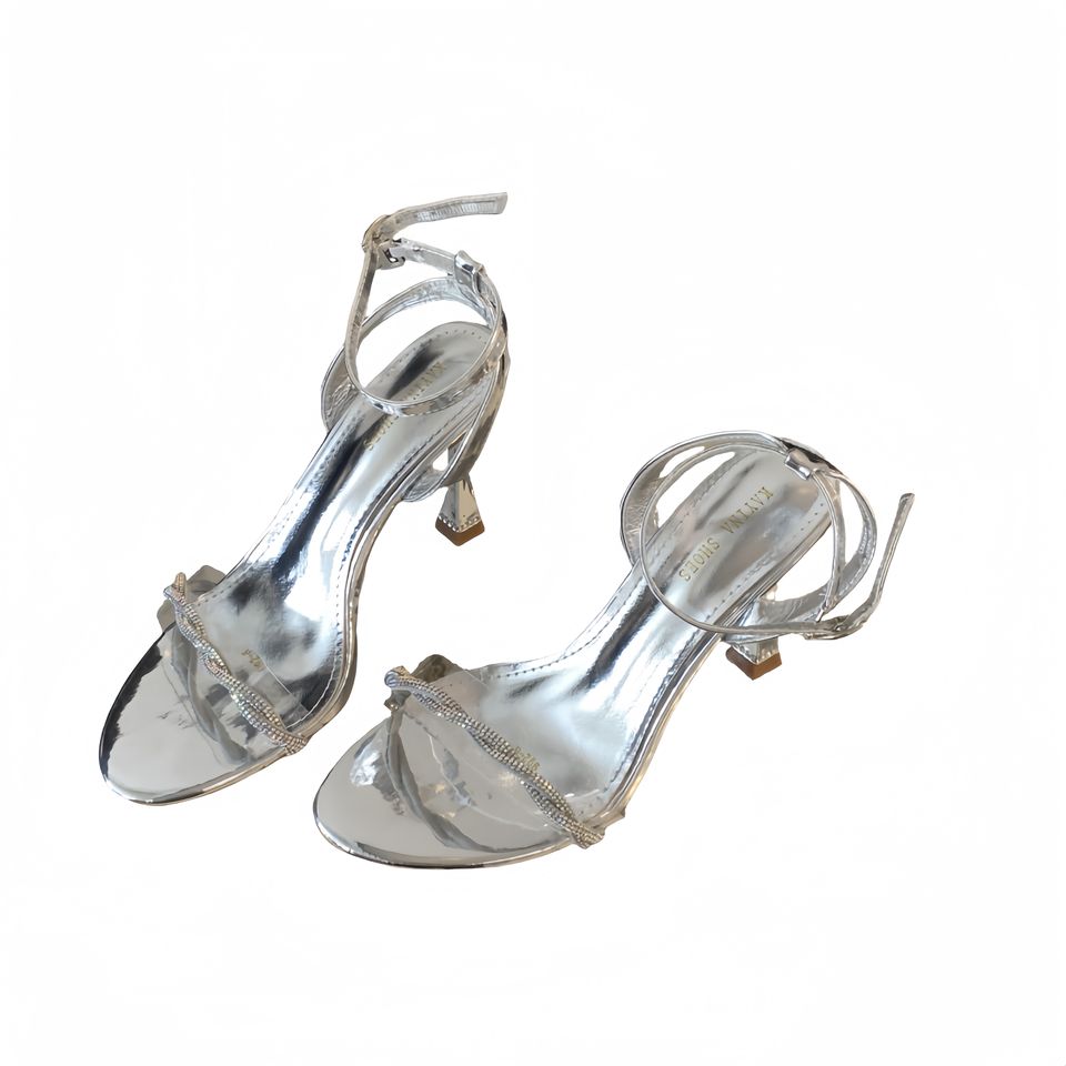 Nouvelles sandales d'été 2024 à bout ouvert avec strass de luxe léger, talons hauts fins noirs, polyvalentes pour femmes