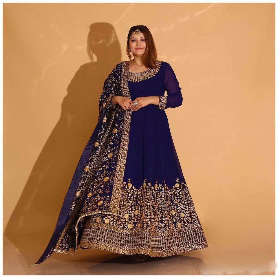 2024 nouvelle robe traditionnelle indienne pakistanaise Georgette Salwar Kameez pour les femmes longue tenue ethnique avec dentelle travail pour les fêtes