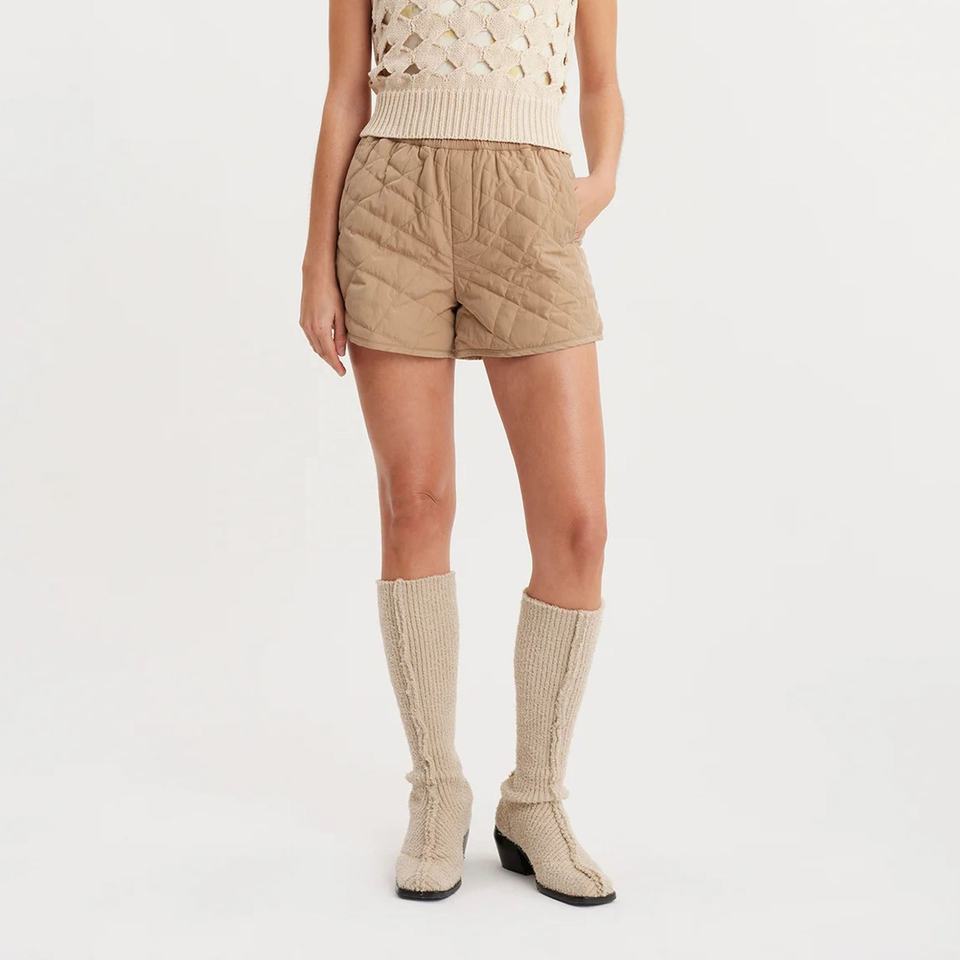 2024 nouvelle tendance polyester recyclé matelassé rembourré OEM personnalisé diamant Quilting poches latérales respirant confortable femmes Shorts