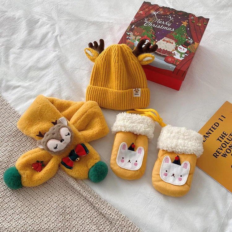 Name:3 Piece Christmas Knitted Animals Hat Scarf And Glove Gift Box Set