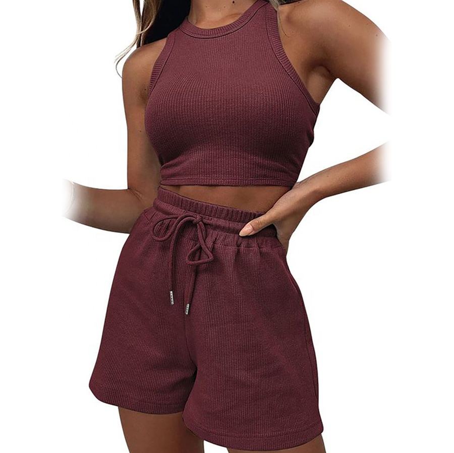 2024 nouvelle conception couleur unie tenues été sans manches 2 pièces haut court respirant été ensemble élégant deux pièces ensemble femmes