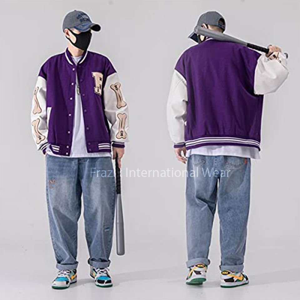 2024 OEM Usine Enduit Hommes Toile Vestes Hiver Vers Le Bas Chenille Brodé Letterman Style
