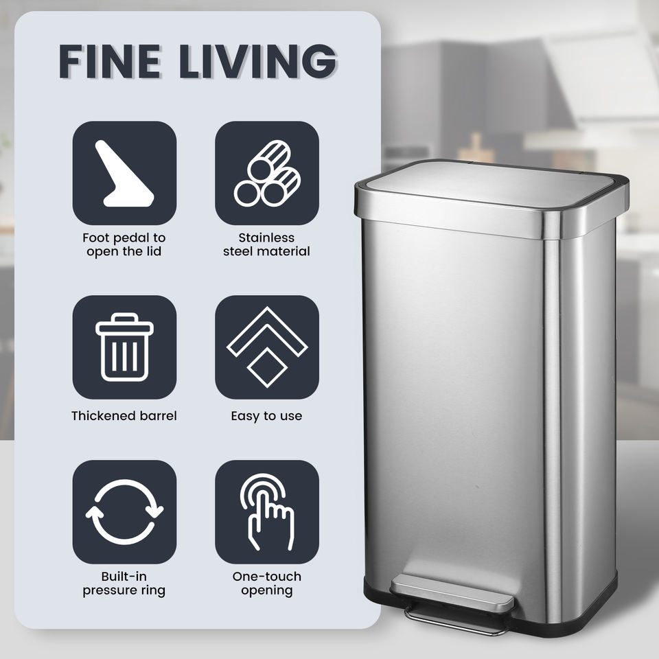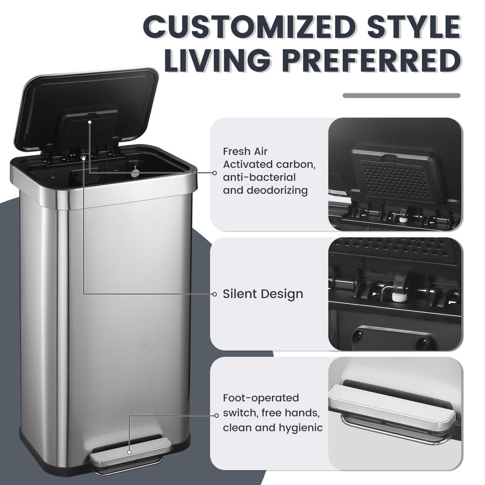 Poubelle intelligente de cuisine en acier inoxydable 2024 OEM J&L Custom 50L (13 gallons) à capteur automatique pour recyclage