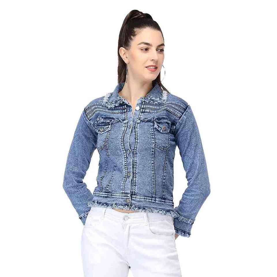 2024 OEM Veste en jean pour femme, personnalisée, déchirée, délavée, unie, style vintage, mode Mam Clothing, Manteau en jean tendance
