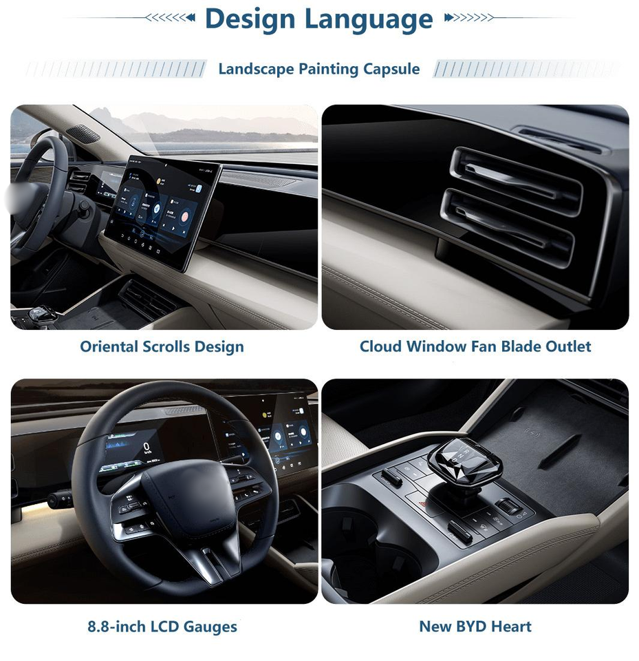 Berline hybride rechargeable 2024, nouvelle énergie PHEV, haute performance, moteur turbo allemand, prêt à l'exportation, intérieur foncé, pneus R17, transmission intégrale gauche