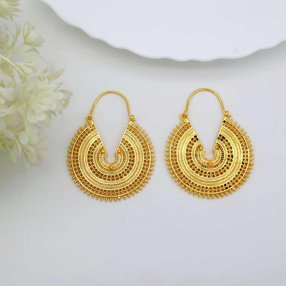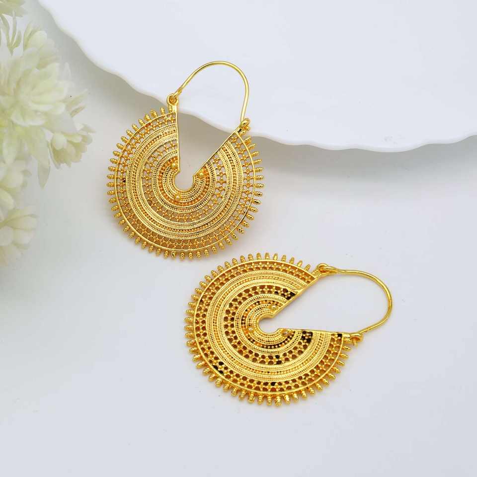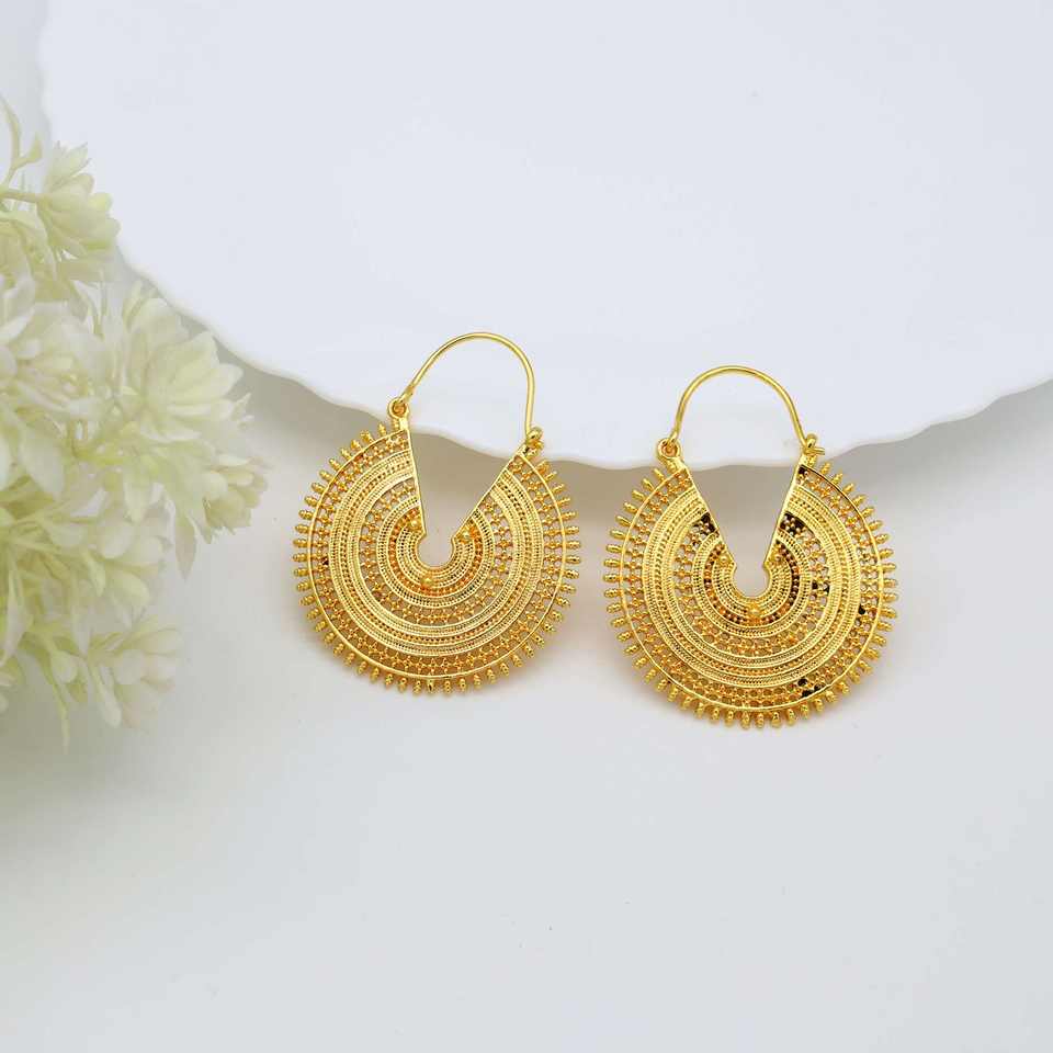 2024 Popular Bohemian Style Indian Women Tribal Hoop Earring Gypsy Brass 18K Gold Plated Geometric Designer Ear Jewelry