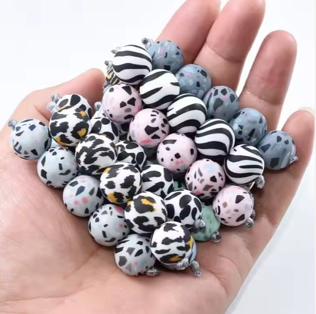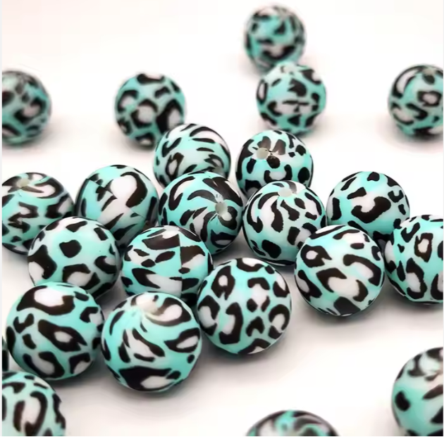 2024 perles de silicone de guépard de léopard d'impression populaire 15mm rond en gros