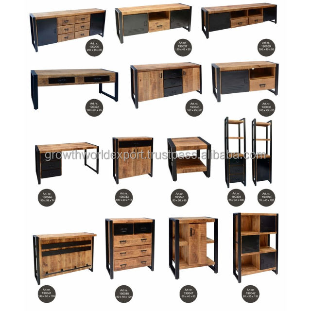 Product name:Industrial Cabinet Buffet with 2 Rough wood door & 1 iron drawer