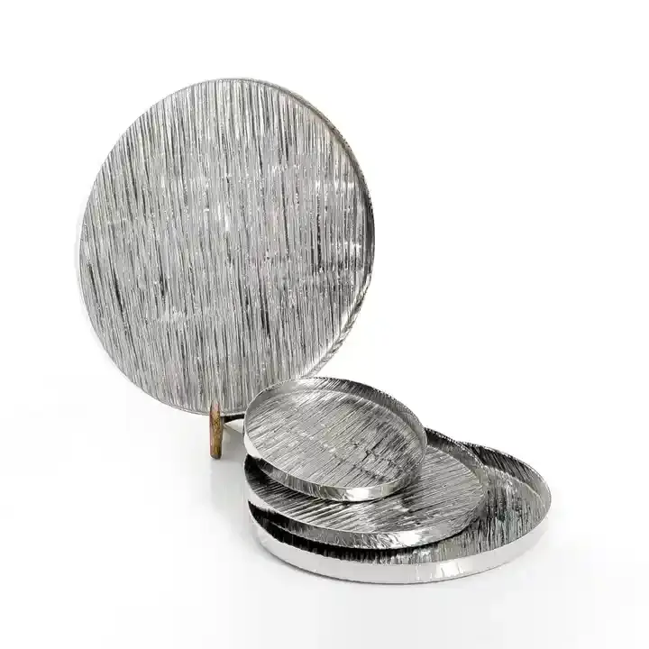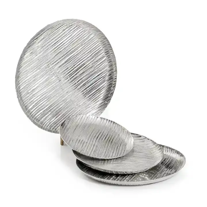 Ensemble moderne de 3 plats ronds en aluminium argenté pour servir des fruits secs et des dattes, vente chaude, forme moderne, nouveau