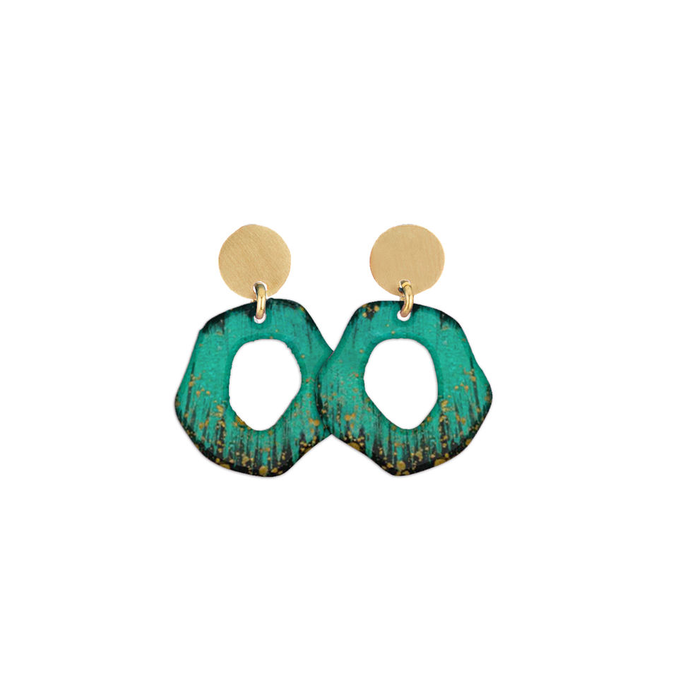 2024 South America Halloween geometric blue enamel earrings turquoise geometric hoop costume earrings purple Patina earrings