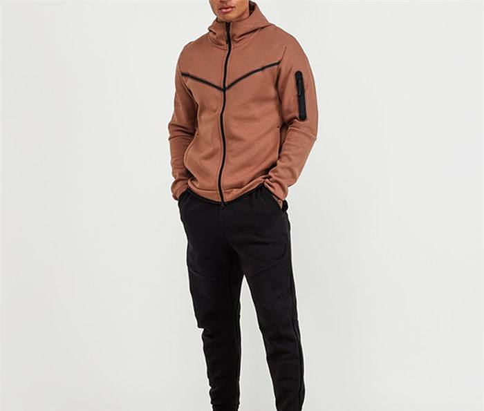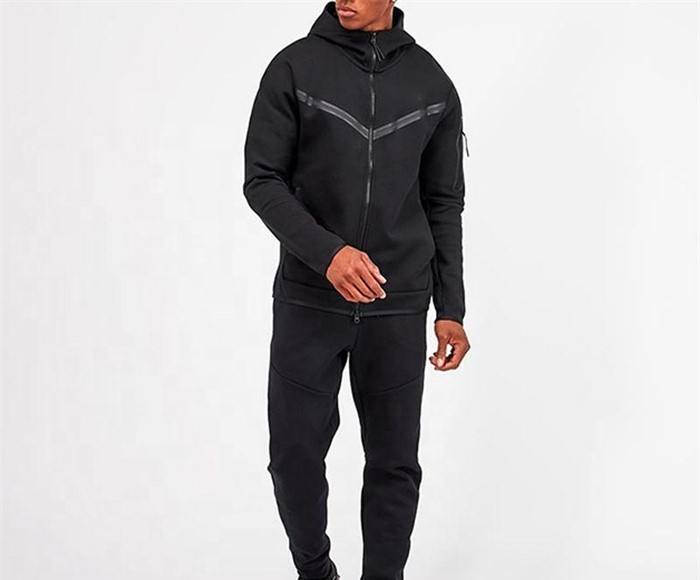 2024 Usine de vêtements de sport Logo personnalisé Polyester Tech Fleece Full Zip Hoodie Jogger Hommes Survêtement de sport