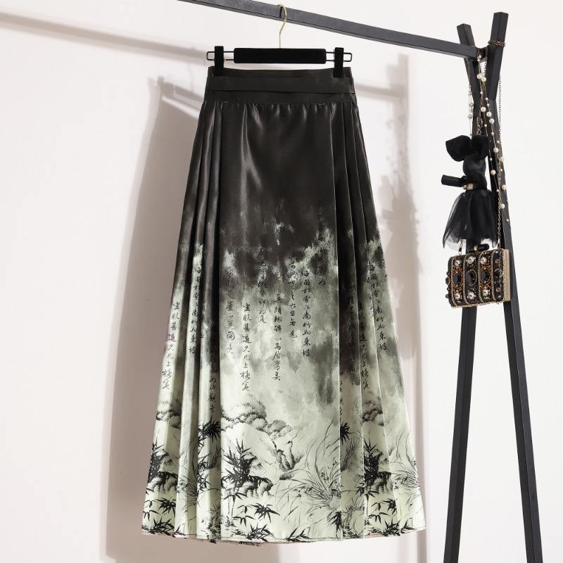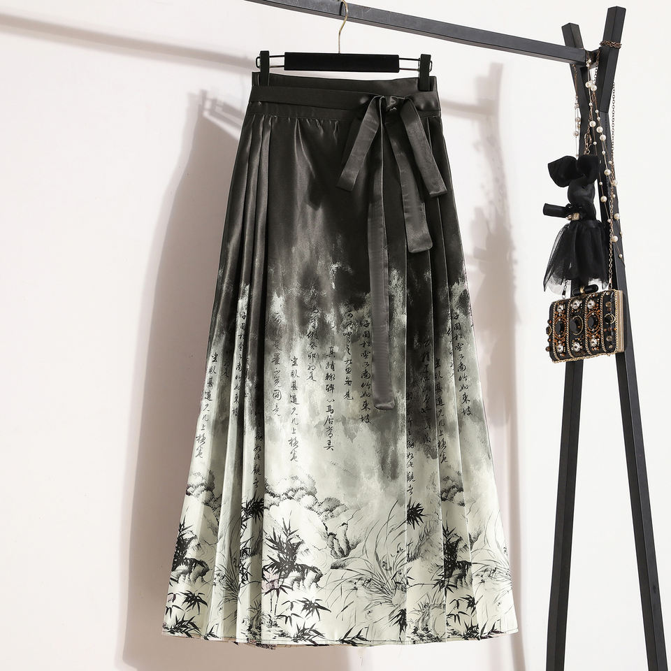 Jupe plissée à taille haute, style rétro chinois, teinte à l'encre, polyvalente, nouvelle collection printemps 2024, 2203 #