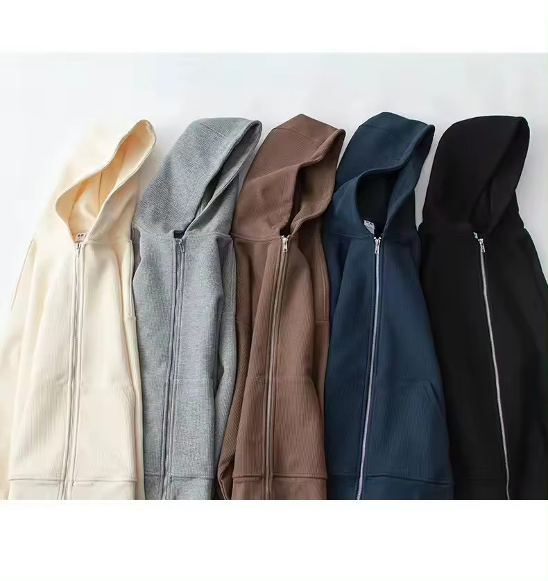 Sweat à capuche unisexe grande taille avec fermeture éclair, tricot gaufré épais 400 g/m², personnalisable avec logo – Collection Printemps 2026