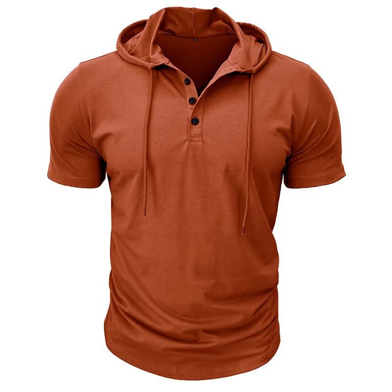2024 printemps été hommes à manches courtes à capuche T-Shirt nouveaux hommes Henry col couleur unie décontracté hauts t-shirts hommes vêtements de sport T-shirts