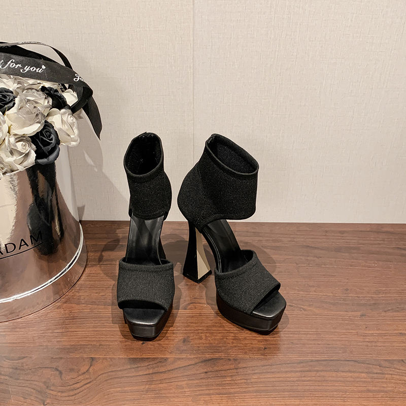 Nouvelles sandales pour femmes en tissu tissé volantant, imperméables, à plateforme et talon épais, printemps-été 2024