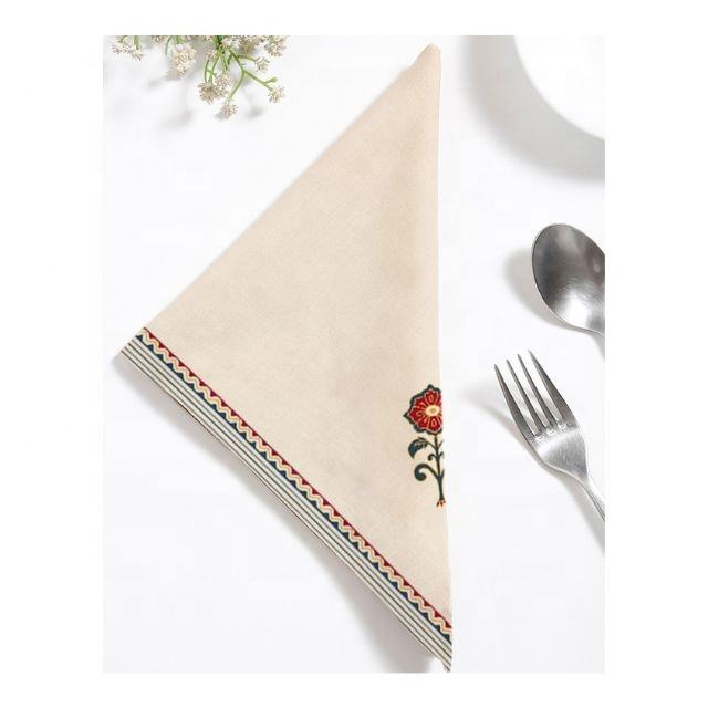 Serviette de table 100 % coton pur, brodée de fleurs, sur mesure, avec bordure rayée, la plus vendue, fabriquée en Inde, collection 2026
