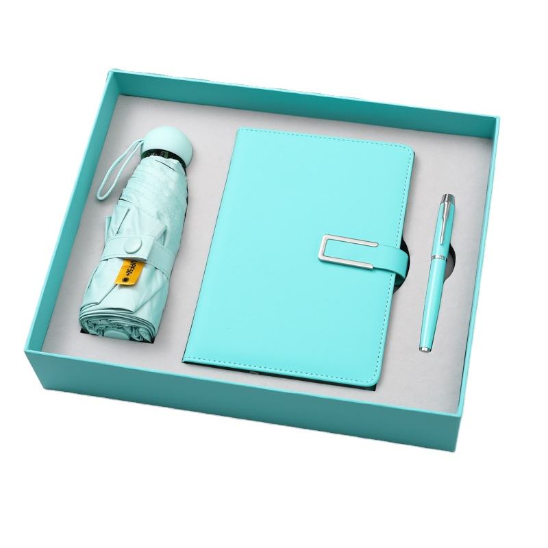 Coffrets cadeaux Unai GS002 2026 Été Frais : Carnets de notes sérigraphiés personnalisés, parapluie et clé USB