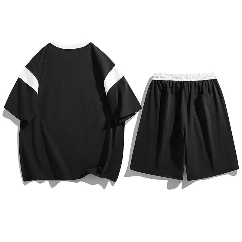 2024 Summer Two-Piece Sets Men T-shirt and Shorts Black White Striped Contrast Casual Jogging Tracksuit Outfits Short Suit Man
