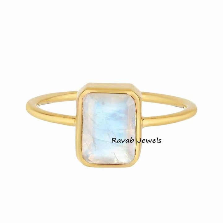 2025 conception d'usine Super exportation qualité arc-en-ciel pierre de lune Sterling 925 anneau Rectangle forme 8x10mm lunette réglage fête de mariage