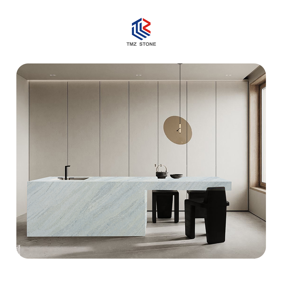 2024 TMZ Comptoir en quartz cristal bleu de haute qualité Design moderne résistant aux taches Durable pour une utilisation en hôtel Prix OEM/ODM