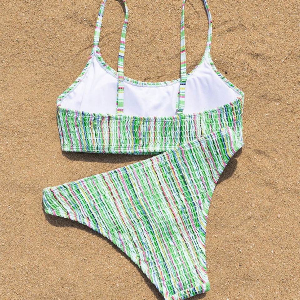 Maillot de bain triangle texturé 2024 sans entrejambe avec imprimé, tenue de plage pour femmes