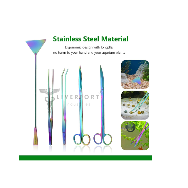 Product Name:5 Pcs Multicolor Aquarium Tools Straight,Crvd Tweezers Scissor Spatula