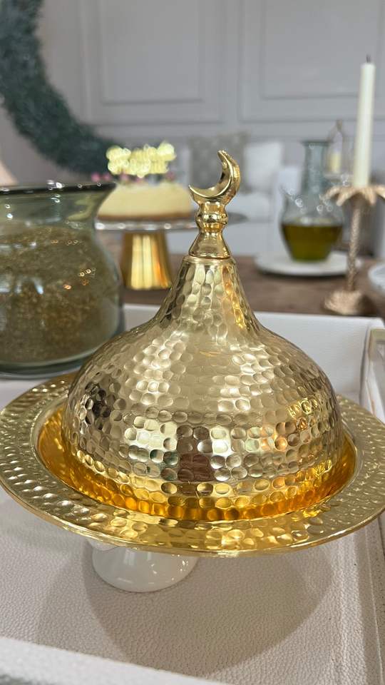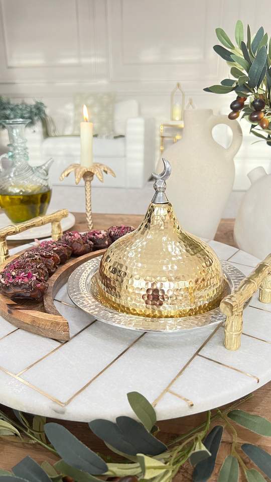 2024 Top Trending Design fait à la main martelé fini arabe Design nourriture et désert servant un dôme en métal pour servir