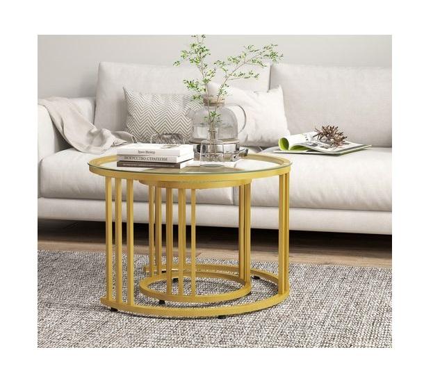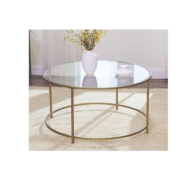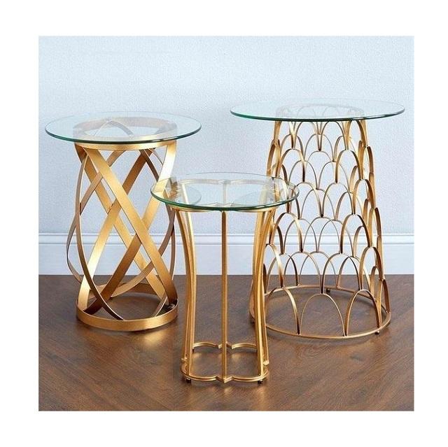 2024 grande table basse tendance avec dessus en verre trempé avec support brillant en métal doré utilisé dans le salon de l'hôtel à la maison au meilleur prix