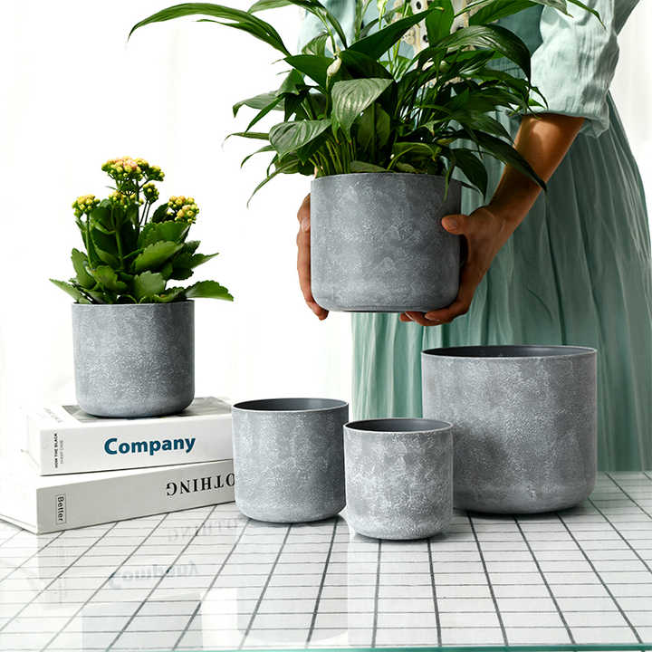 Product Name:large 12" plastic blue indoor gray flower pots planters with words