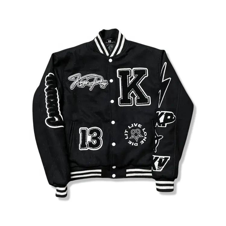 2024 hiver Logo personnalisé grande taille décontracté Bomber lettre Baseball Sport de plein air travail Denim Vintage garçon manteau veste en cuir pour hommes