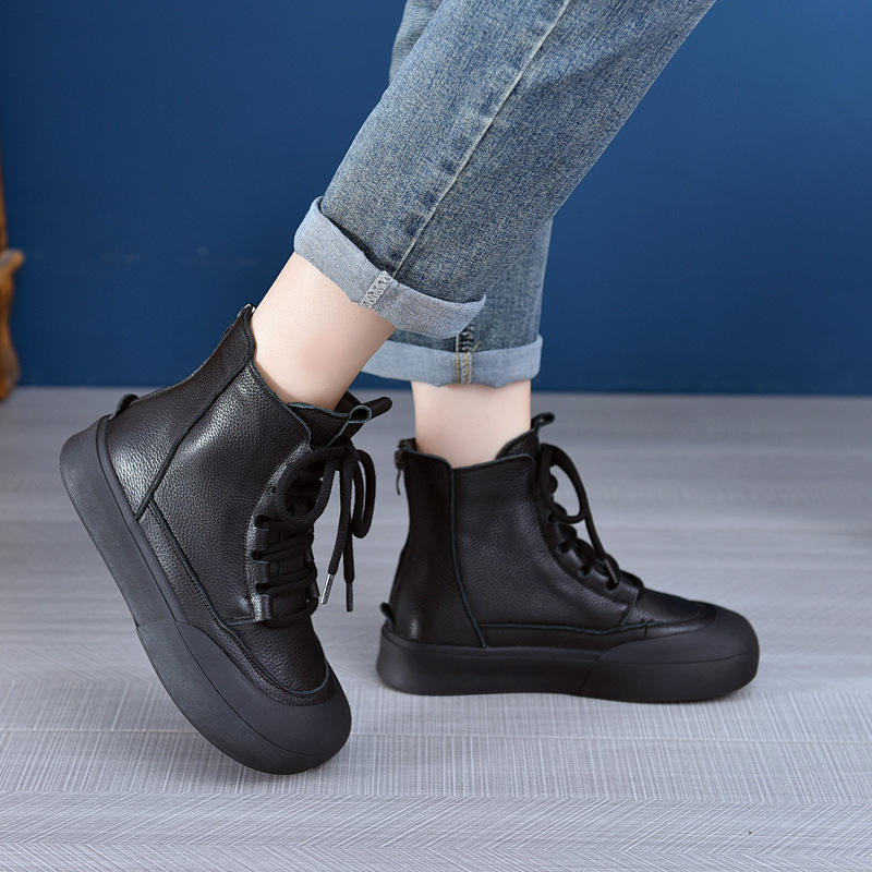 2024 hiver nouveau rétro pour Martin bottes pour femmes couche supérieure peau de vache talon plat fond épais chaud coton à la mode décontracté court