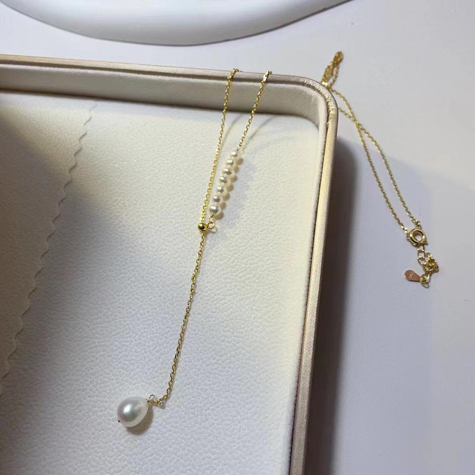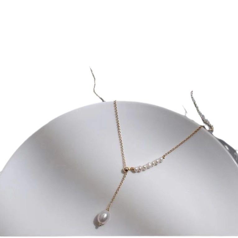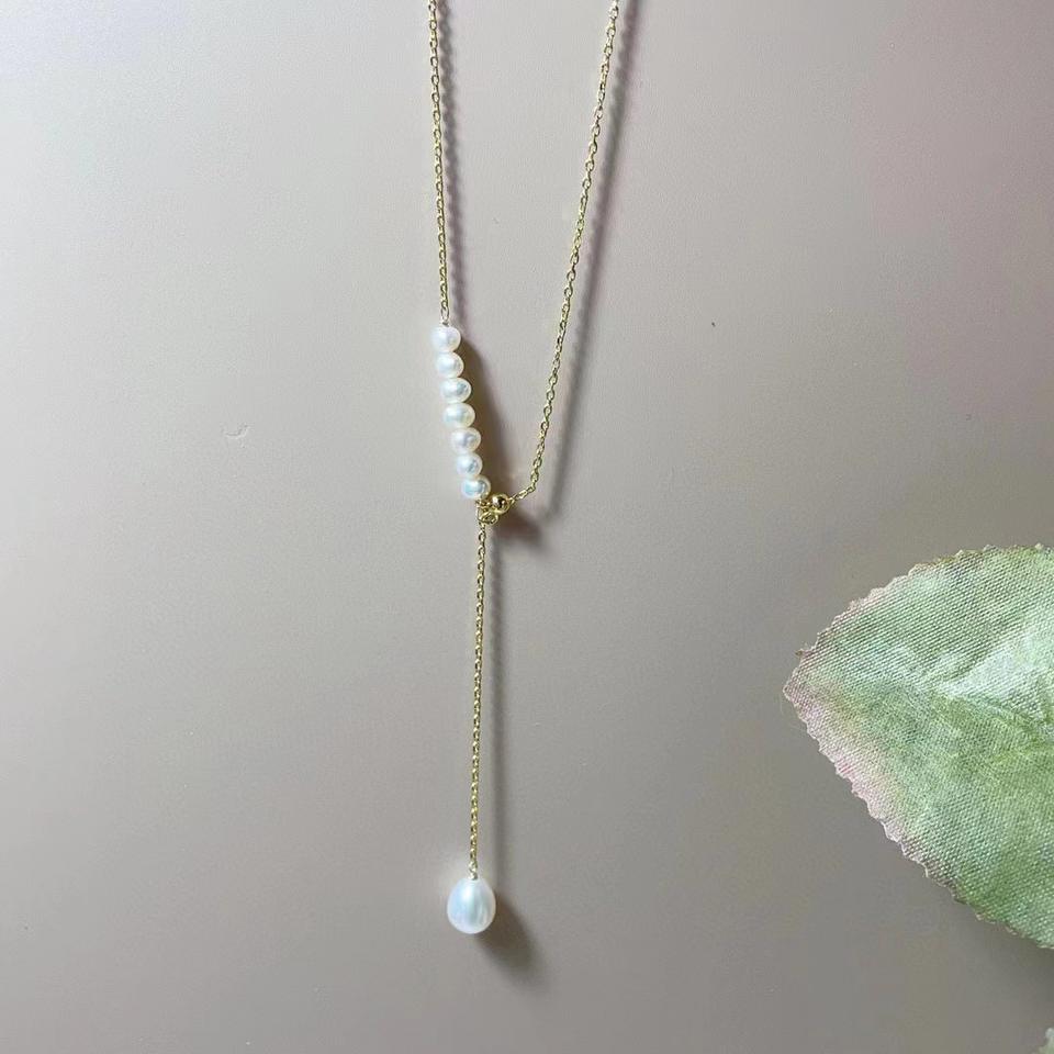 Collier en argent pur S925 avec perles d'eau douce naturelles, style long simple et luxueux, tendance pour hommes et femmes, nouveauté hiver 2024