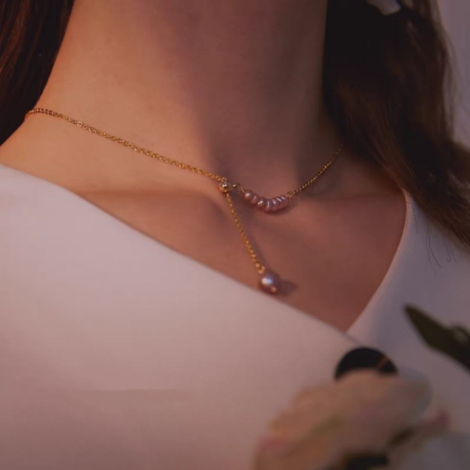 2024 Women's Y-Shaped Collarbone Chain Necklace Versatile Luxury with Natural Freshwater Pearls Young Niche