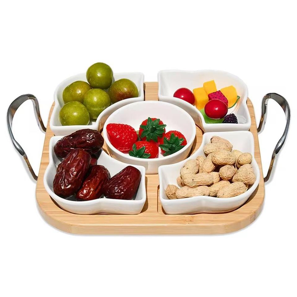 Product Name:Bamboo Serving Tray With Bowls And Mental Handle