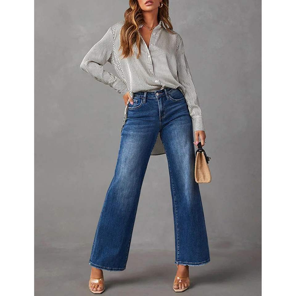 2025 2024 Trendy Women's Baggy Jeans Breathable High-Waisted Stretchy Denim Pants with Wide Leg Skinny Fit