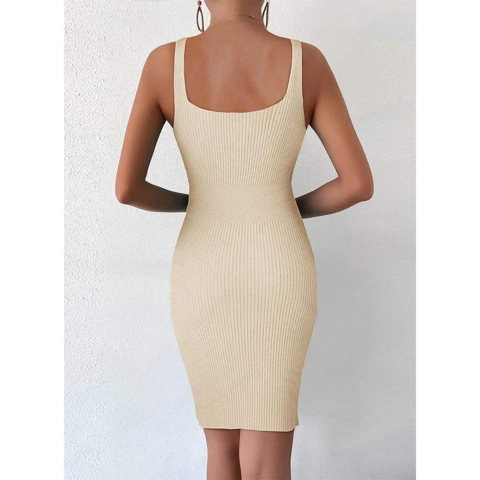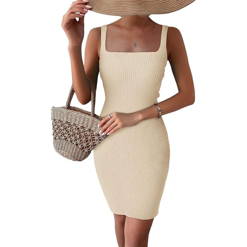 2025 2024 Women's Summer Sleeveless Sundress Sexy Bodycon Mini Dress Ribbed Knit Casual Square Neck for Cocktail Parties