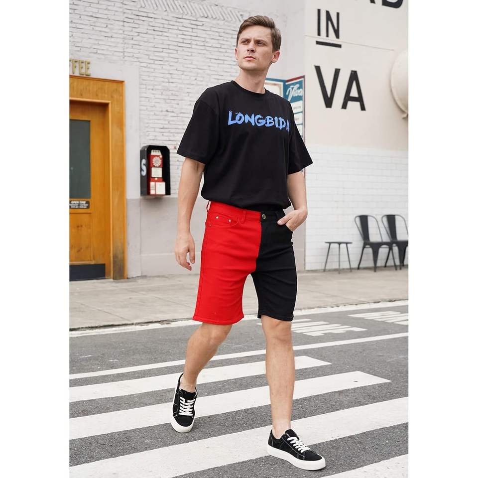 2025 2025 Men's High Casual Summer Fashion Denim Shorts Cute Two-Tone Slim Fit Jeans Pockets Stretchy 2025 Summer Short