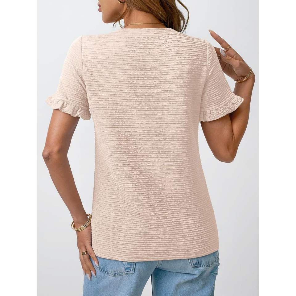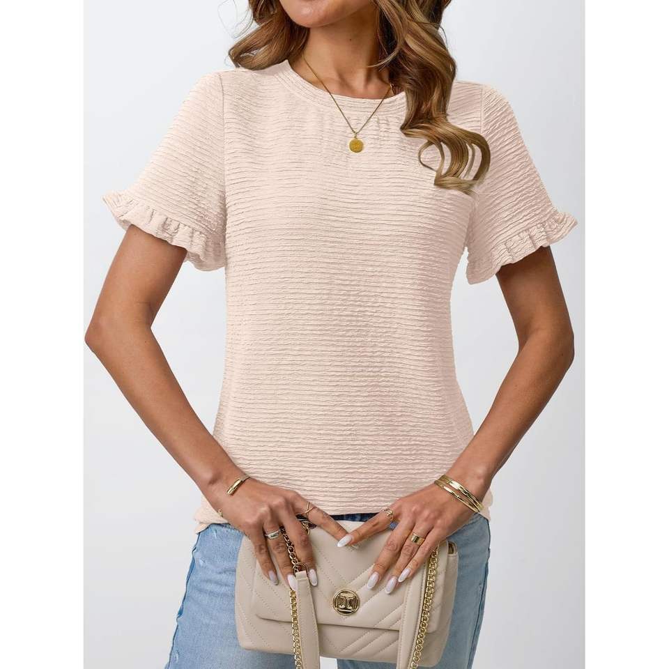 2025 2025 Summer Casual Women's Trendy Fashion Dressy Blouses Short Sleeve T Shirts with Ruffle Tops & Crew Neck