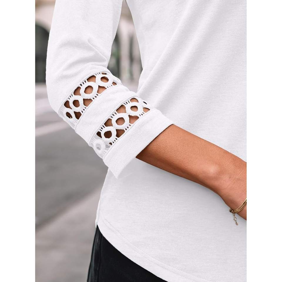 2025 2025 Women's Casual Dress 3/4-Length Sleeve Crewneck Lace Tunic Spring Trendy Business Outfit