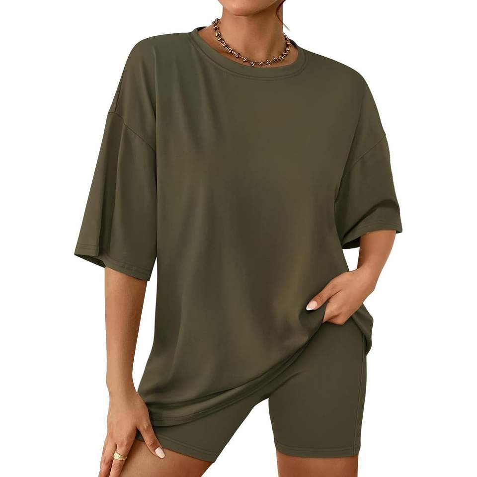 2025 2025 Women's Summer 2-Piece for Lounge Set Oversized Tshirts and Biker Shorts XS Size Fashionable and Matching Clothing