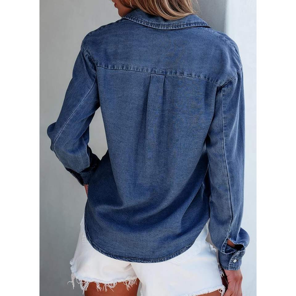 2025 Vintage Chambray Blouse Top for Women Button Down Denim Jean Jacket with Short Sleeves for Summer Outfits
