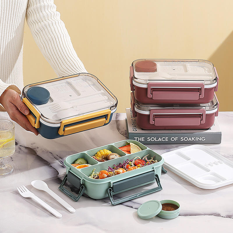 Boîte à bento 2025 à 4 compartiments, résistante au micro-ondes, étanche, avec couverts