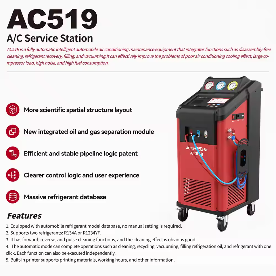 2025 AC519 équipement d'entretien de climatisation automatique intelligent récupération de réfrigérant A/C Machine nouveau produit dans les soins de voiture