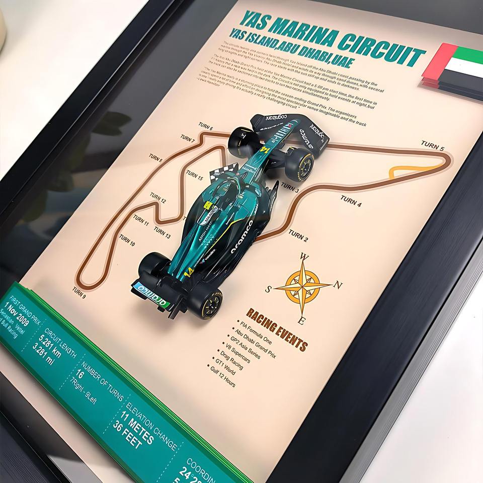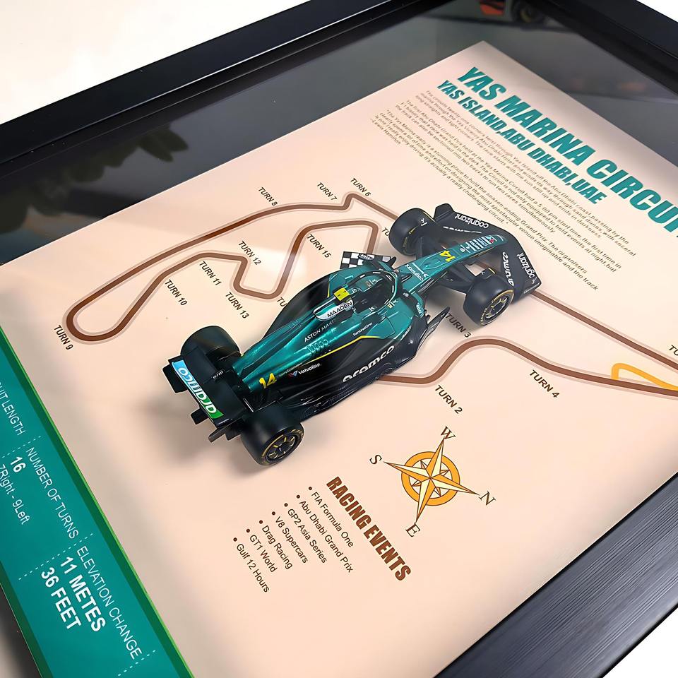 Carte du circuit de Formule 1 d'Abu Dhabi 2025, modèle de voiture de course AMR25, peinture décorative