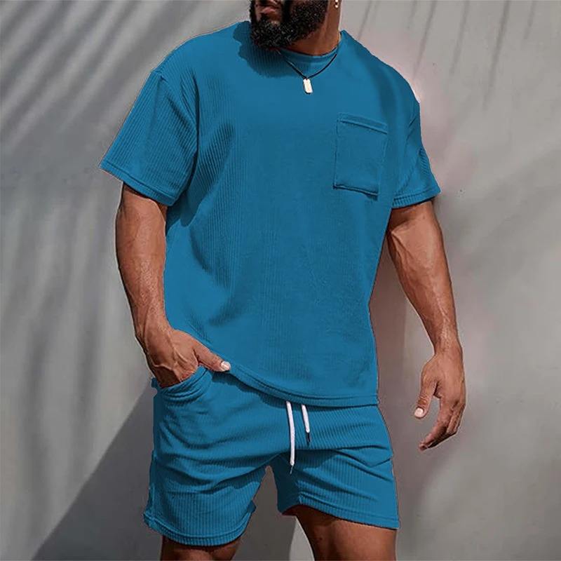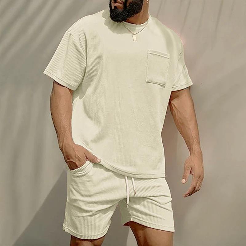 2025 américain lourd couleur unie petit décolleté T-shirt à manches courtes hommes été 425G Shorts Sports et loisirs costume ample