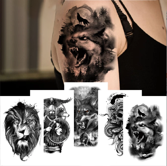 Tatouages temporaires animaux 2025 pour hommes adultes, tatouages religieux demi-bras pour femmes, autocollants de tatouage factice temporaire pour la famille