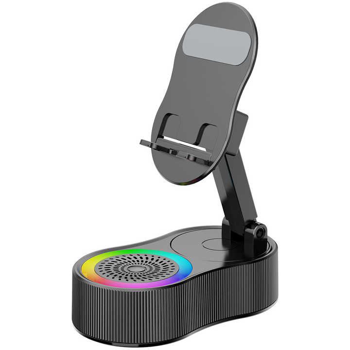 Haut-parleur Bluetooth 5.3 sans fil à détection automatique 2025 avec USB, AUX, batterie externe portable, support de téléphone, RGB, pliable, pour smartphone, commande vocale