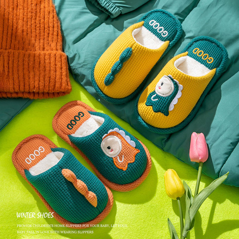 2025 automne hiver enfants en peluche pantoufles fille garçon Homewear semelle souple dessin animé dinosaure pantoufles Parent-enfant chaud chaussures antidérapantes