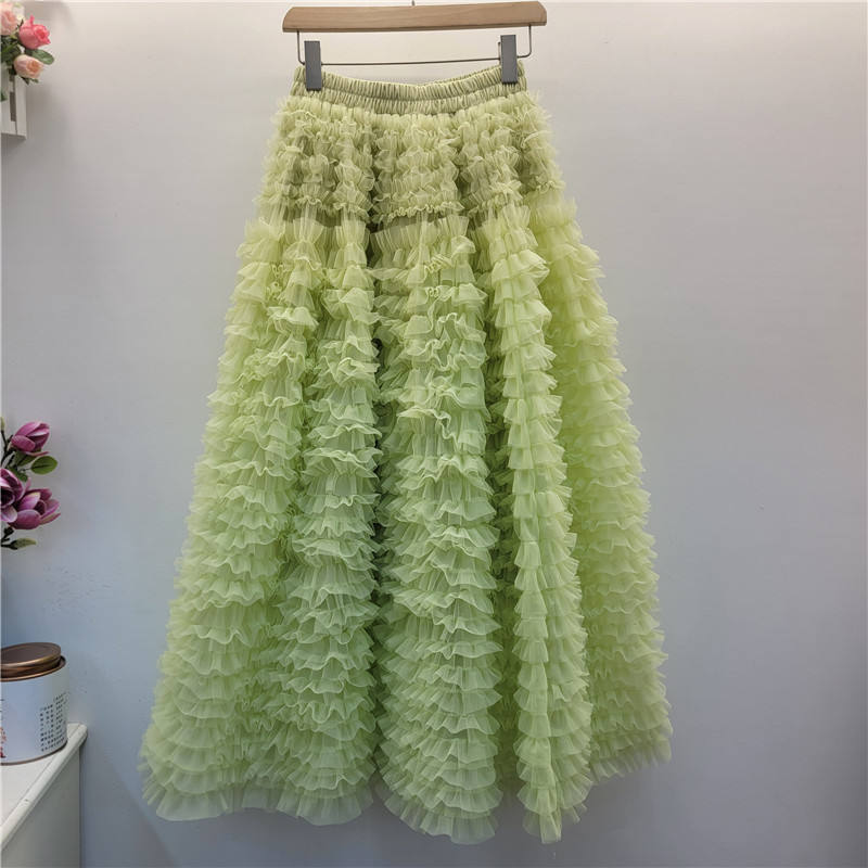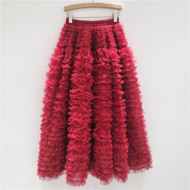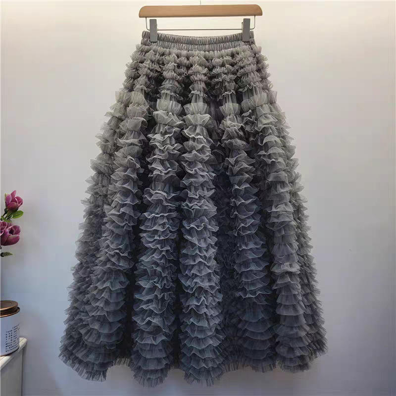 2025 automne hiver nouveau Design multicouche en mousseline de soie a-ligne gâteau jupe demi-longueur jupes décontractées pour les femmes